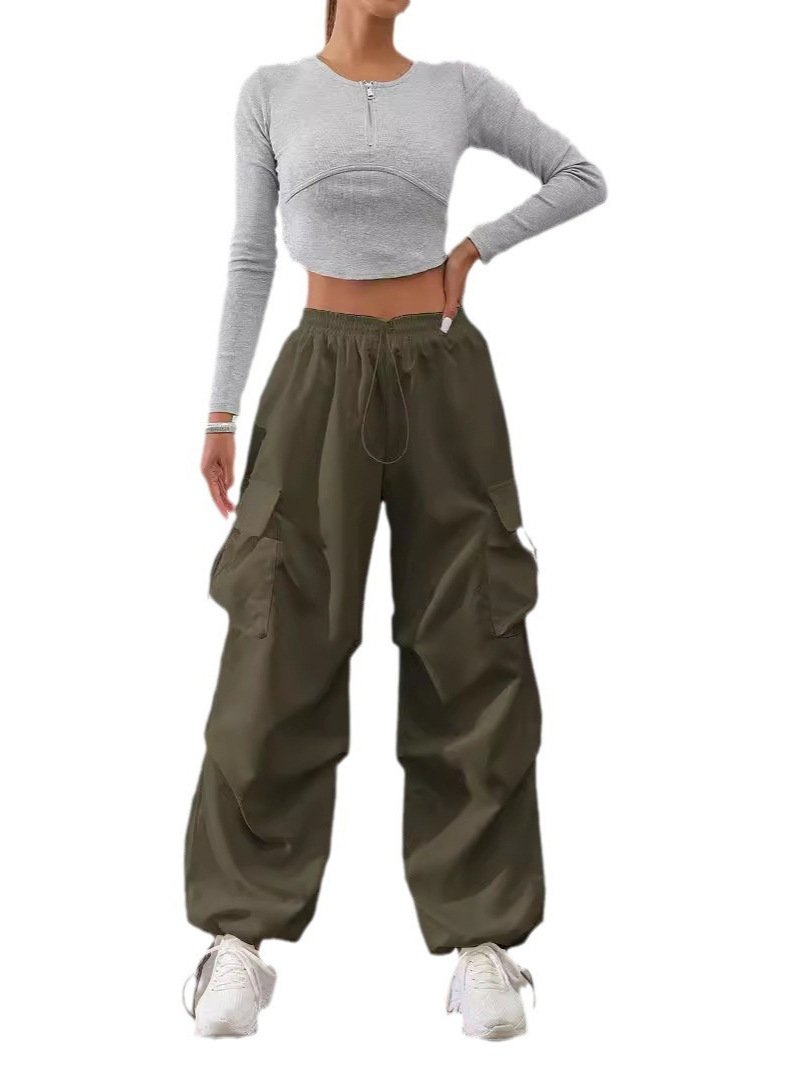 Los bolsillos de varios tamaños se distribuyen a lo largo de los pantalones, lo que los hace convenientes para guardar artículos pequeños y agregan capas ricas y tridimensionalidad a la forma general.